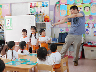 EAC学院の外国の先生が指導致します。年齢にあわせて、 興味のもてるように工夫された内容です。英語を耳で聞いて理解し、自然に英語に親しむ環境があります。