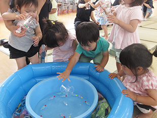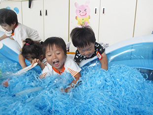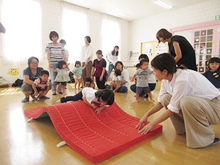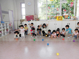 集団生活に入るためのお友達とのふれあいの場です。年齢に合わせた遊びをします。